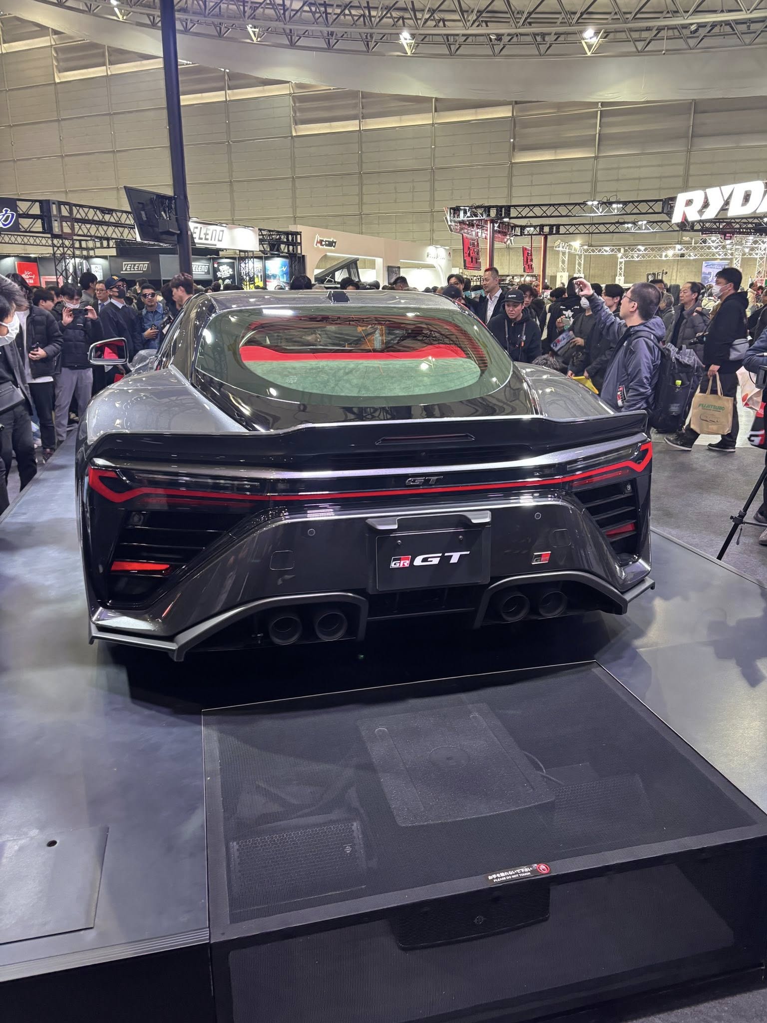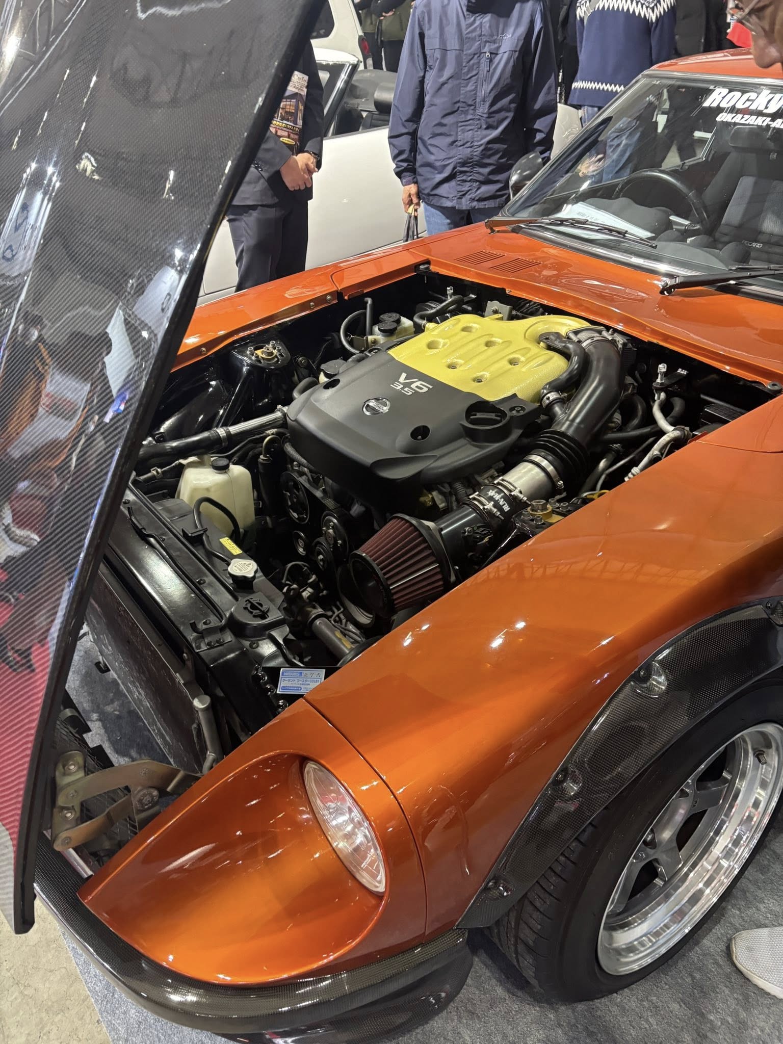 オートウェイ初め当社でお世話になってる各メーカーさんにもご挨拶をし、各チューニングメーカーの作り込みを研究して来ました。当社のLPG HYBRID施工スタッフは展示車両の下側を覗き込みながらタンクの取付場所も検討してました