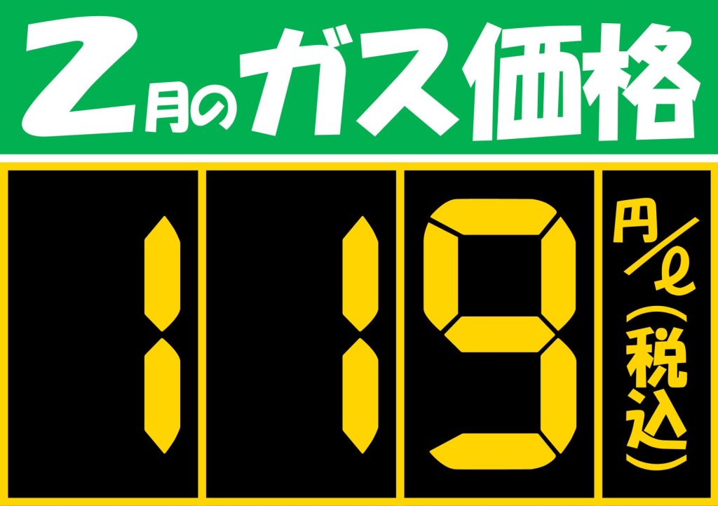 2月の当店オートガス(LPガス)価格は119円(税込)です!